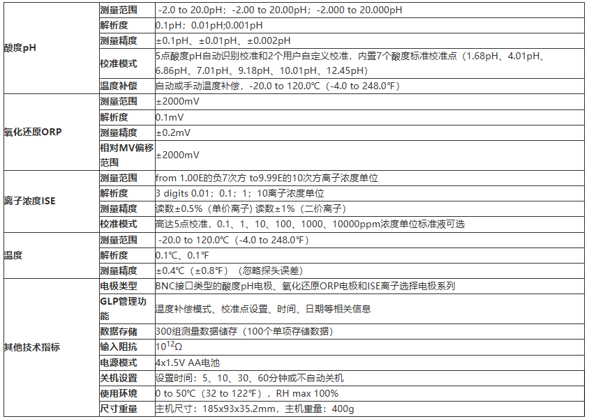 独特离子浓度增量测量法,自定义和多 种离子浓度单位选择; mol/L、 mmol/L、 mg/L、mg/mL、 ug/L、 %、ppt、 ppm、g/L、用户自定义