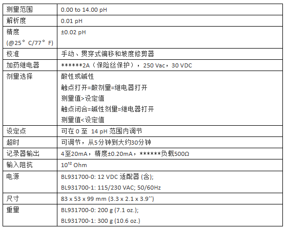 BL931700 是一款紧凑型单设定点pH控制器,专为空间和成本都很重要的应用而设计。可调剂量继电器可配置为高于或低于 pH设定点的剂量。用户可以选择自动或手动加药模式,方便维护和故障排除。该设备包含高阻抗pH输入,可与任何具有标准 BNC 连接器的pH电极一起使用。