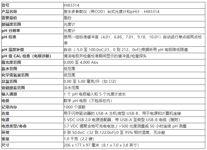 主机,标配不含测量项目试剂和酸度电极及电极支架,专用玻璃比色皿套装(4套),HI74083300定制专用比色皿适配器,USB定制专用数据传输线,HI75110/230 定制专用 USB2.0电源适配器【规格:DC5V】,中英文使用说明书【温馨提示:为方便用户仪器保存和野外现场快速操作携带方便,建议订购HI72083300定制专用携带箱;为确保仪器准确性,建议选购并定期使用HI83314-11专用NIST测量曲线标定套装对仪器进行标定,确保仪器处于最佳性能状态】