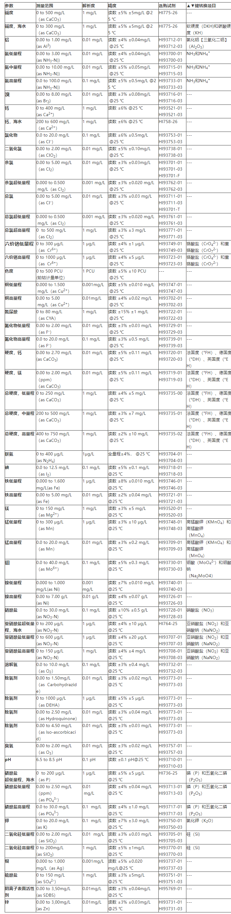 主机,标配不含测量项目试剂和酸度电极及电极支架,HI731333N 专用玻璃比色皿套装(4套),USB定制专用数据传输线,HI75110/230 定制专用 USB2.0电源适配器【规格:DC5V】,中英文使用说明书【温馨提示:为方便用户仪器保存和野外现场快速操作携带方便,建议订购HI72083300定制专用携带箱;为确保仪器准确性,建议选购并定期使用HI83300-11专用NIST测量曲线标定套装对仪器进行标定,确保仪器处于最佳性能状态】