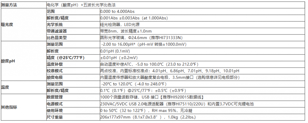 主机,标配不含测量项目试剂和酸度电极及电极支架,HI731555专用玻璃比色皿套装(6套)和HI731333N专用玻璃比色皿套装(4套),HI74083300 比色皿适配器,HI920015 USB定制专用数据传输线,HI75110/230 定制专用 USB2.0电源适配器【规格:DC5V】,中英文使用说明书【温馨提示:为方便用户仪器保存和野外现场快速操作携带方便,建议订购HI72083300定制专用携带箱;为确保仪器准确性,建议选购并定期使用HI83399-11专用NIST测量曲线标定套装对仪器进行标定,确保仪器处于最佳性能状态】