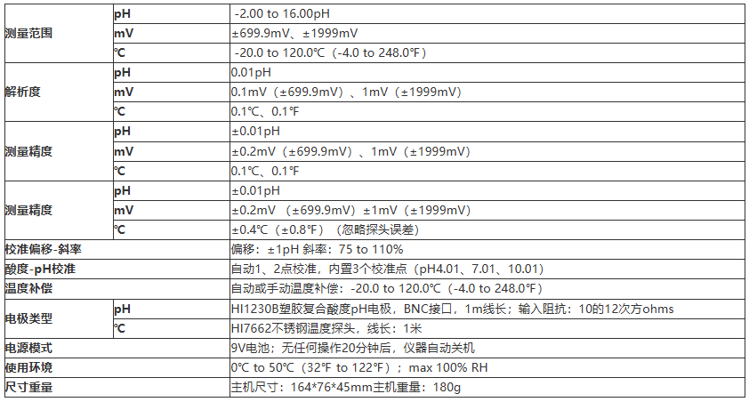 pH范围:-2.00 to 16.00pH;mV范围:±699.9 mV、±1999 mV