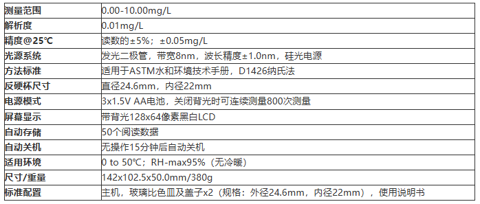 主机,玻璃比色皿及盖子x2(规格:外径24.6mm,内径22mm),使用说明书【温馨提示:建议用户在订购仪器时,同时订购标准校准组和测量项目试剂】