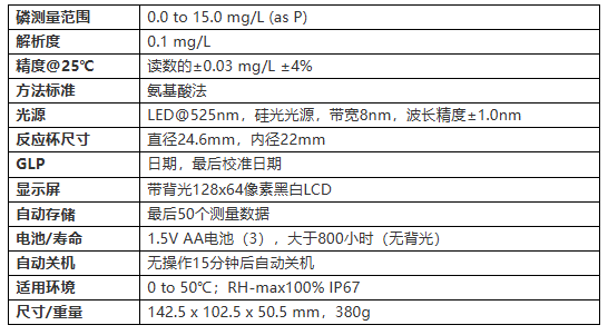HI97706符合IP67防水标准,采用创新的光学系统设计,有良好的精度,可重复性和进行测量所需的时间,CAL CheckTM功能允许使用NIST可追溯标准对仪器进行性能验证和校准,多种测量方法,内置反应计时器,确保样品测量与用户之间的结果一致,良好实验室规范(GLP)显示后一次用户校准的日期和时间,电池状态指示灯和自动关机设置。