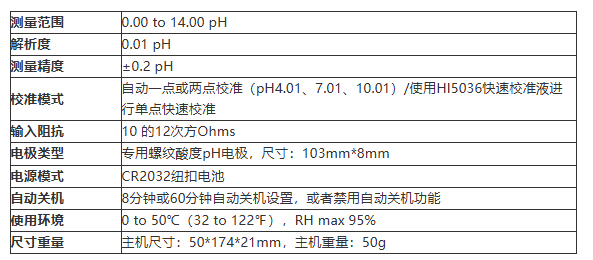 测量范围:0.00 to 14.00 pH,精度:±0.2 pH;