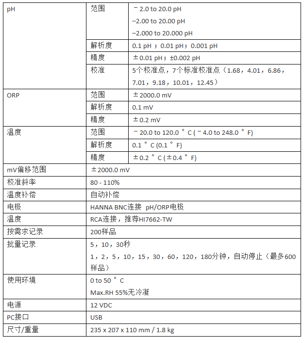 •最多5点pH校准,7种标准缓冲液和5种自定义校准液可供选择