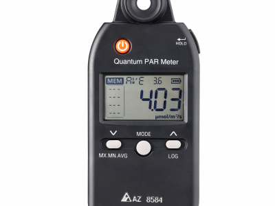 此款8584 AZ衡欣 袖珍式全光谱光照度计可以测量植物光合作用范围的有效辐射 (PAR) 通量。在 400 至 700nm 吸收的光子数与植物的光合作用速率之间存在正比关系,这对于