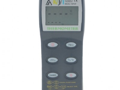 此款8852 AZ衡欣 高精度多功能热电偶温度计,可以测量-200~1370℃的温度,这取决于所连接的热电偶温度传感器类型.让使用者可以选用适合的热电偶在一部主机來测量,以节省费用.(注意,不可在一台主机上同时用兩种不同的热电偶).液晶显示器主要区分为三部份:主萤幕在正中方,辅助萤幕在左下方,时间纪錄在右下方,这三种显示可不断地更新温度的测量结果及其參考时间之讯息,系统会保留最后一次使用时的设定值作为下次使用的预设值.
