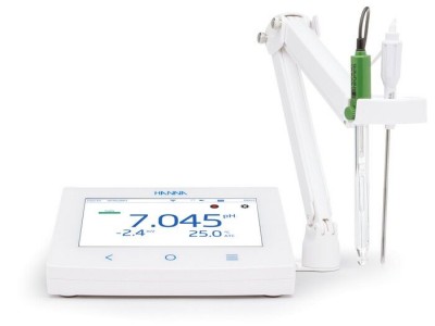 台式仪表结构紧凑,易于操作,配有Hanna Instruments HI1131B双结组合pH电极和HI7662-TW温度探针。