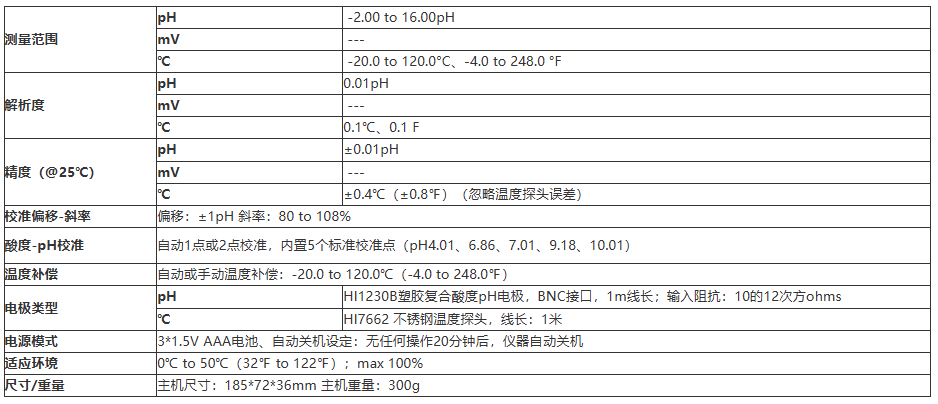 pH范围:-2.00 to 16.00pH;ORP范围:±699.9 mV、±1999 mV;