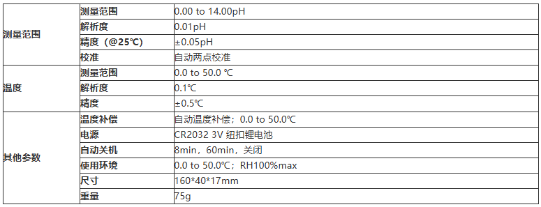 测量范围:0.00 to 14.00 pH,精度:±0.2 pH;