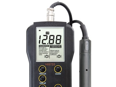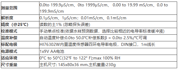 主机,HI76302W内置温度传感器的四环电导率-EC电极,电导率标准缓冲液(标准值@25°C:12880 µS/cm ,规格:20mL),使用说明书,专用仪器包装盒