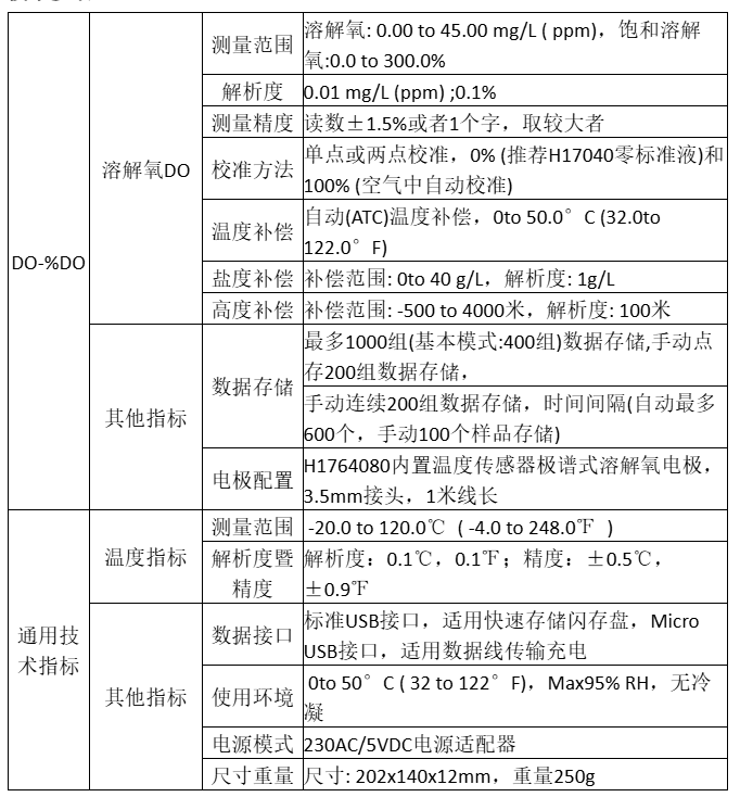 主机,HI764080 内置温度传感器溶解氧电极,1米线长,HI764080A/P 定制专用溶氧膜,数量:2个,HI7041S 专用溶氧填充液,规格:30mL,定制专用电极支架,AC230V/5VDC电源适配器,中英文使用说明书【温馨提示:可以选购酸度电极和HI763100电导率电极,可以实现pH-EC-TDS-DO-盐度-°C多参数水质测定】