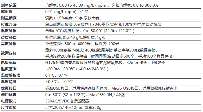 溶解氧范围: 0.00 to 45.00mg/L ( ppm)