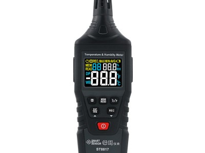 温湿度计是用于测量溫度及水分在大气中的含量。快速、方便、精确地测量空气中的湿度和温度读数。湿度测量仪器通常依靠如温度、压力测量、质量、机械或电气变化的物质中的水分吸收量來测量湿度,再通过校验和计算來獲取湿度测量数據。现代电子设备中使用电变化电容或电阻测量湿度的差异。应用在实验设备、工业、工程生产和专业用途,都是一个理想的湿度和温度计量器。