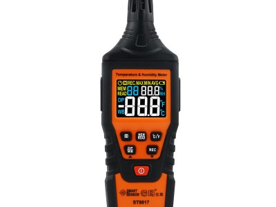温湿度计是用于测量溫度及水分在大气中的含量。快速、方便、精确地测量空气中的湿度和温度读数。湿度测量仪器通常依靠如温度、压力测量、质量、机械或电气变化的物质中的水分吸收量來测量湿度,再通过校验和计算來獲取湿度测量数據。现代电子设备中使用电变化电容或电阻测量湿度的差异。应用在实验设备、工业、工程生产和专业用途,都是一个理想的湿度和温度计量器。