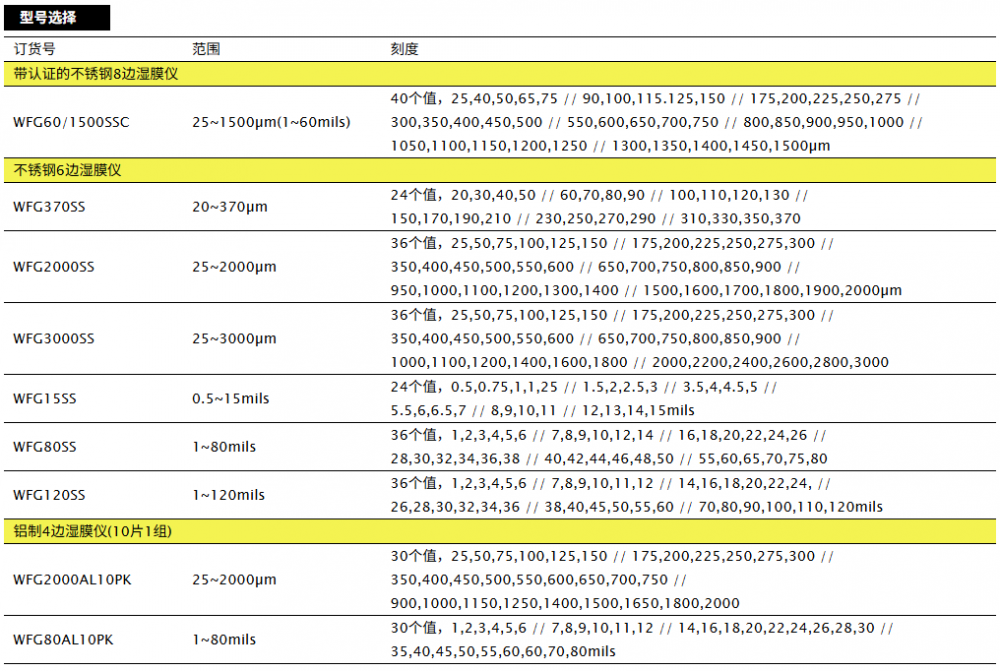 | 24或36个刻度值,测量达3000μm(120mils)的涂层 | ||