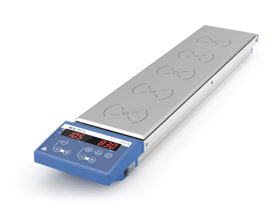 5点数显型加热磁力搅拌器,适用于同步搅拌和加热应用。磁力线圈技术提供多点一致的无噪音搅拌。所有位点都能达到一致的重复性。加热盘面温度无级可调最高达120 °C, 使样品温度最高可加热至 70 °C (具体情况取决于容器类型). 转速恒定,即便承载重量发生变化。