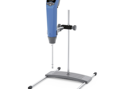 The T 10 battery Complete Solution provides a complete solution for benchtop dispersing operation and includes a reusable stainless steel dispersing tool (5 mm), a stand and a clamp in the scope of delivery.