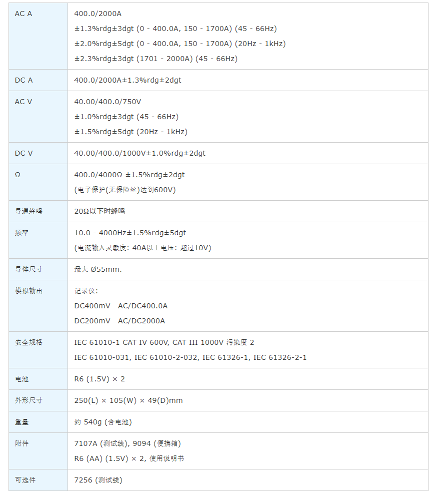 • 交/直流电流测试可达2000A.