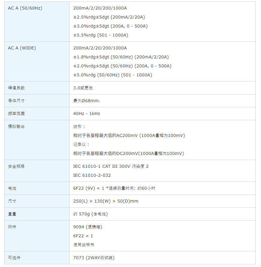 • 特宽夹钳,适用于三或四线(三相)电线,测试泄漏电流.