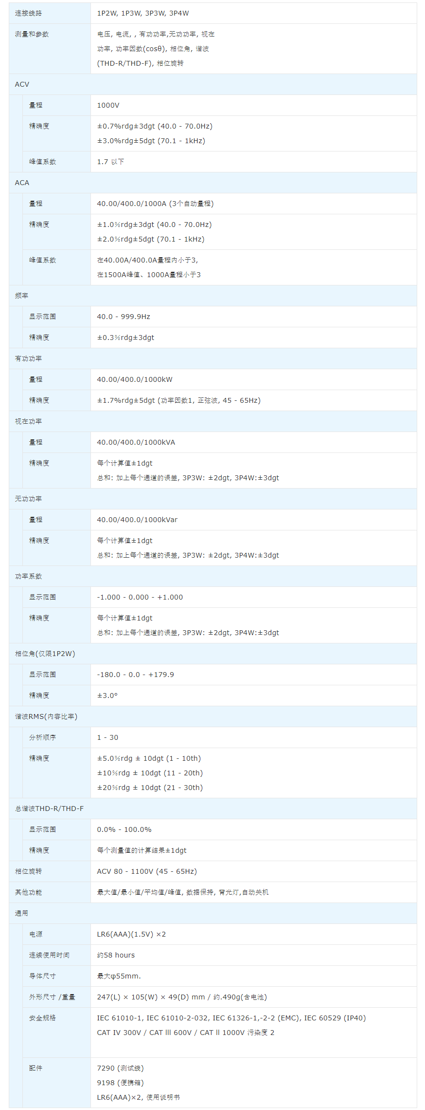 ・多种测量功能:电流、电压、功率、谐波、相位检测
