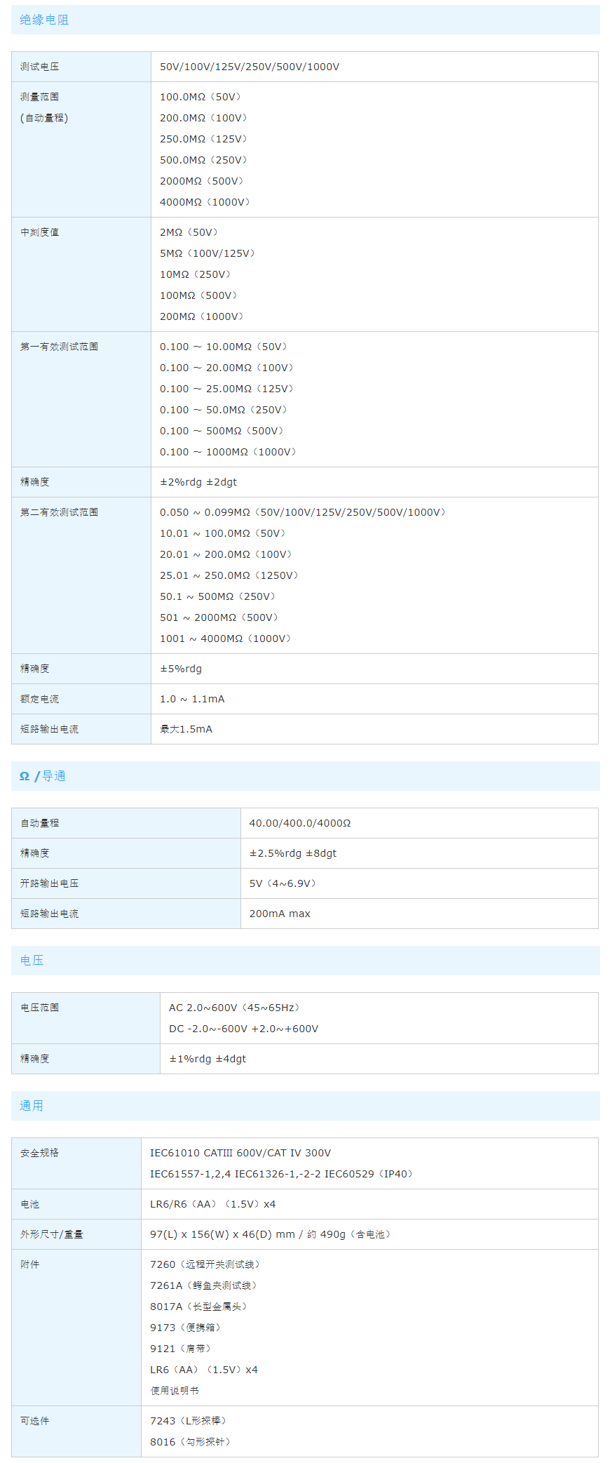 ・六个绝缘电阻测试的范围(50/100/125/250/500/1000V)