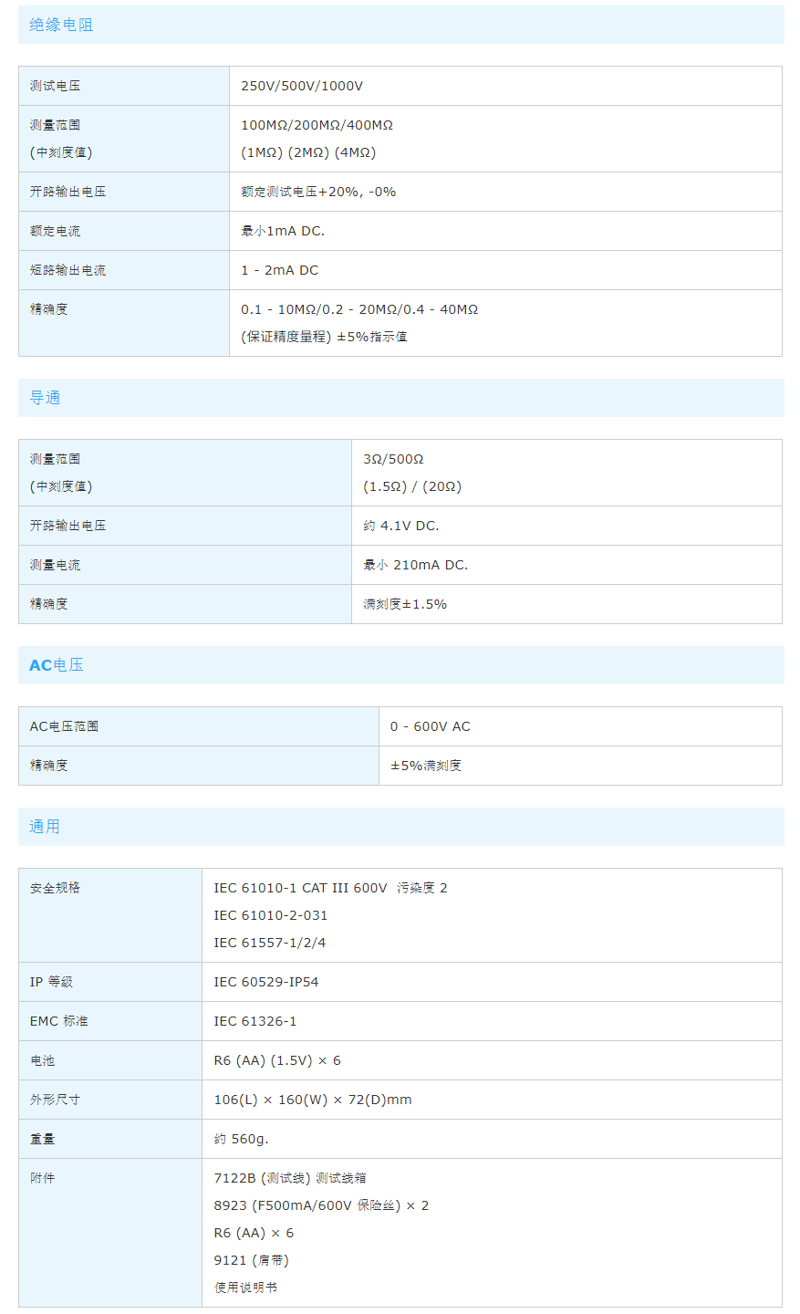 •阻抗值最小时额定测量电流1mA.