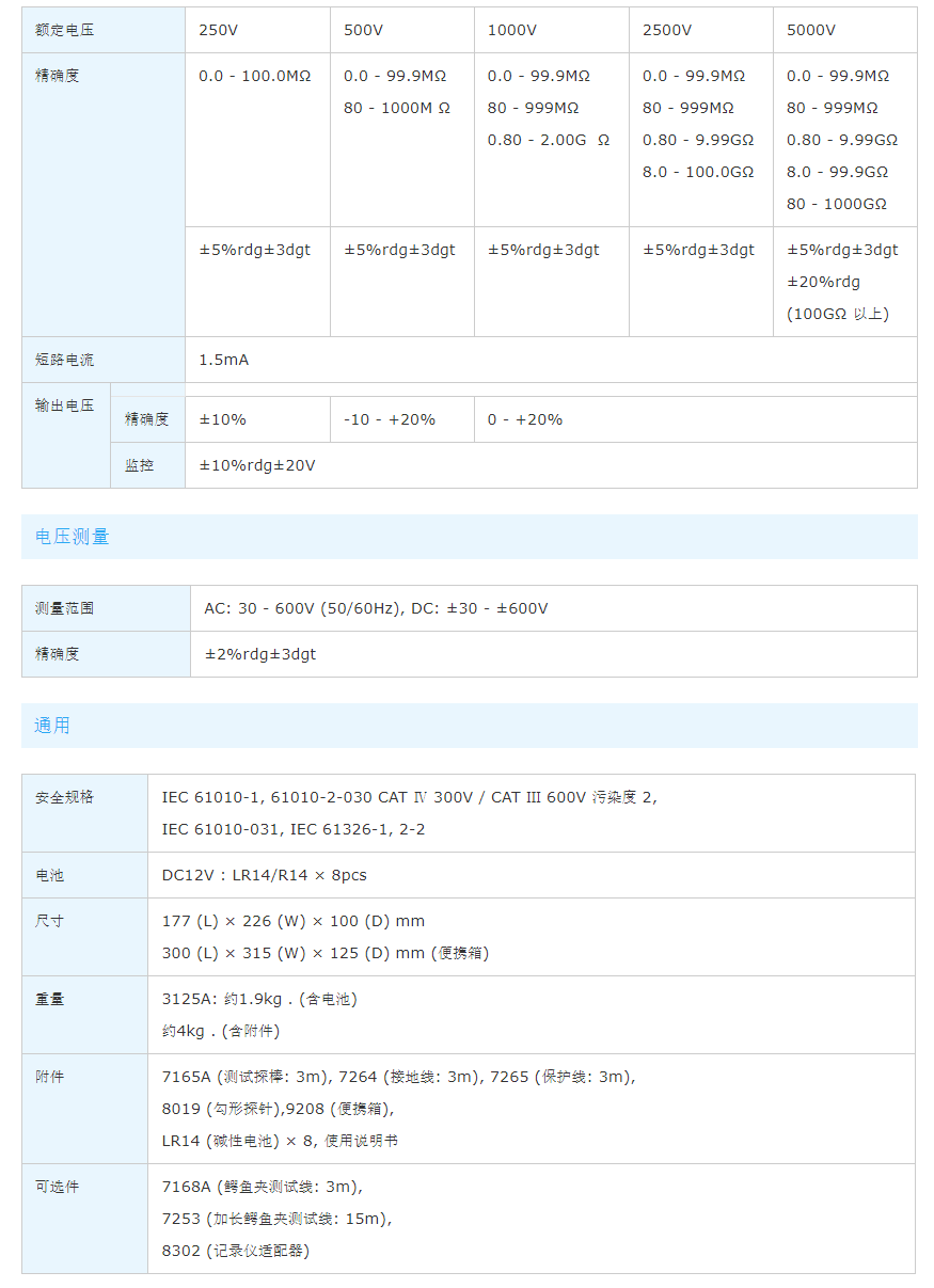 • 测试电压范围为250V-5000V