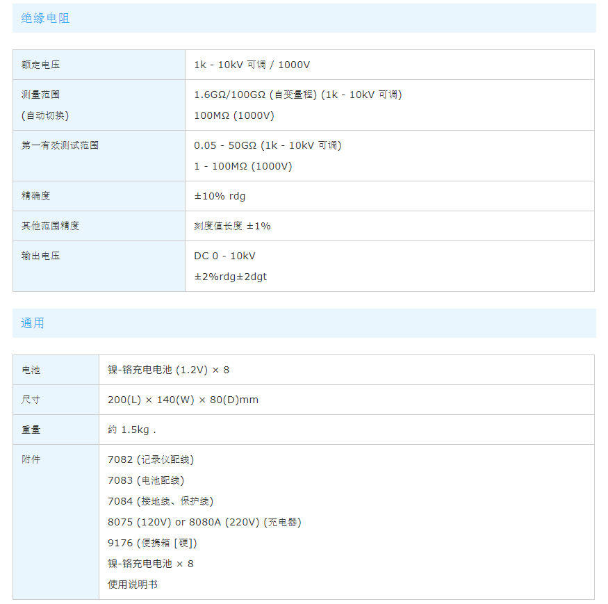 • 额定测试电压可变方式(1kV~10kV).