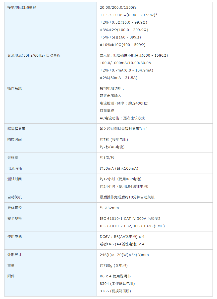 • 测试接地电阻0.05-1500 Ω无需辅助拉地桩,只需一钳便可测试.(多重接地系统)