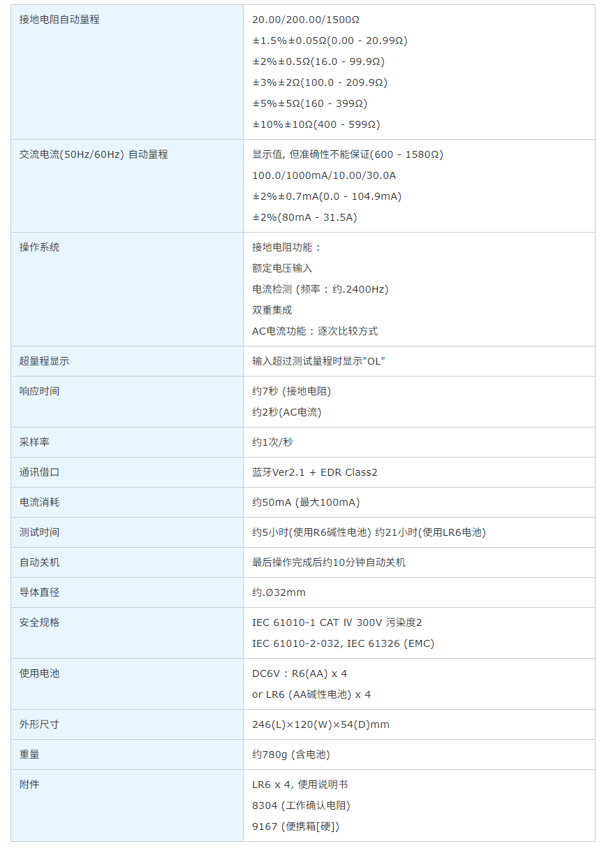 • 可测量接地的漏电电流或相电流从0.1mA~30.0A