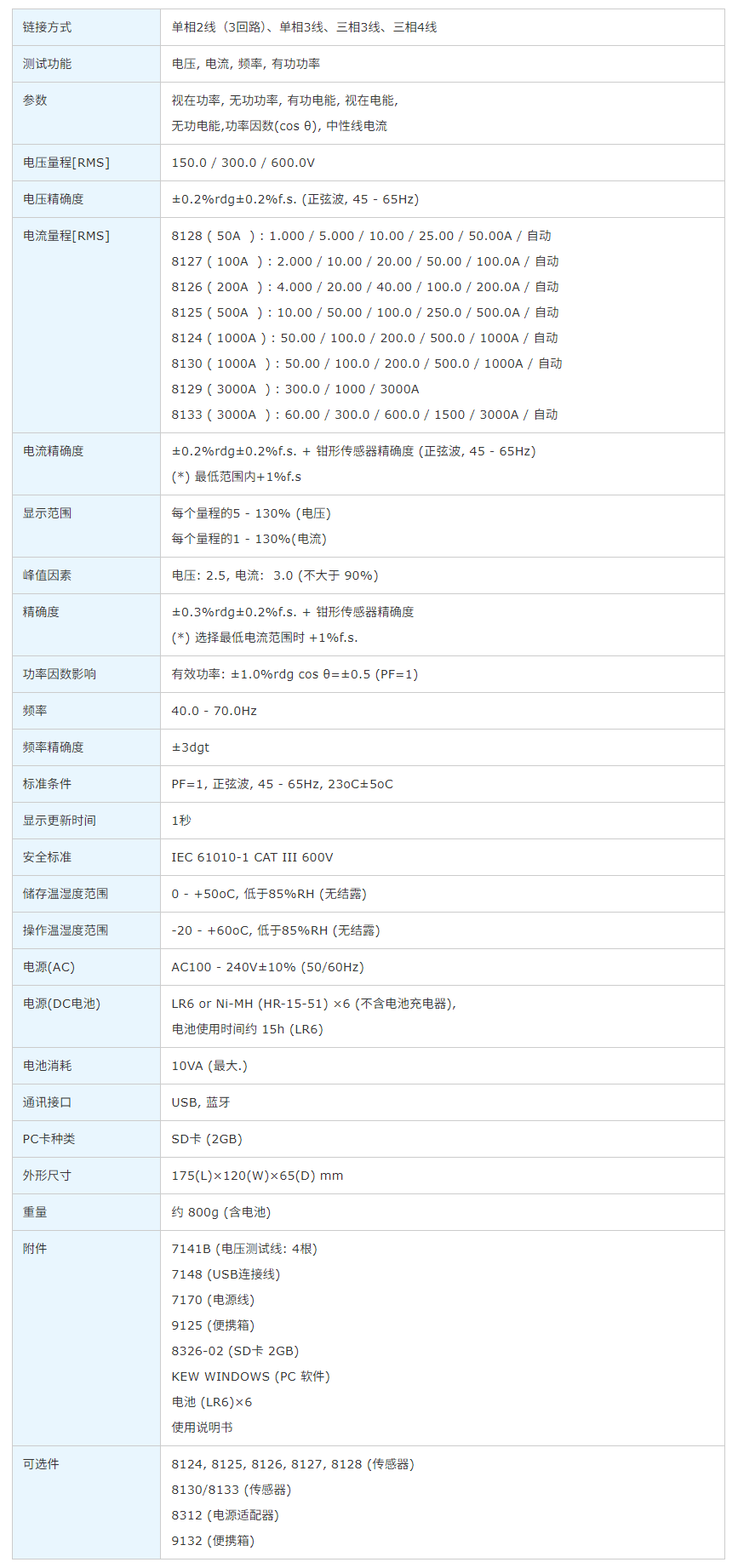 • 有功功率准确性: ±0.3%rdg±0.2%f.s.