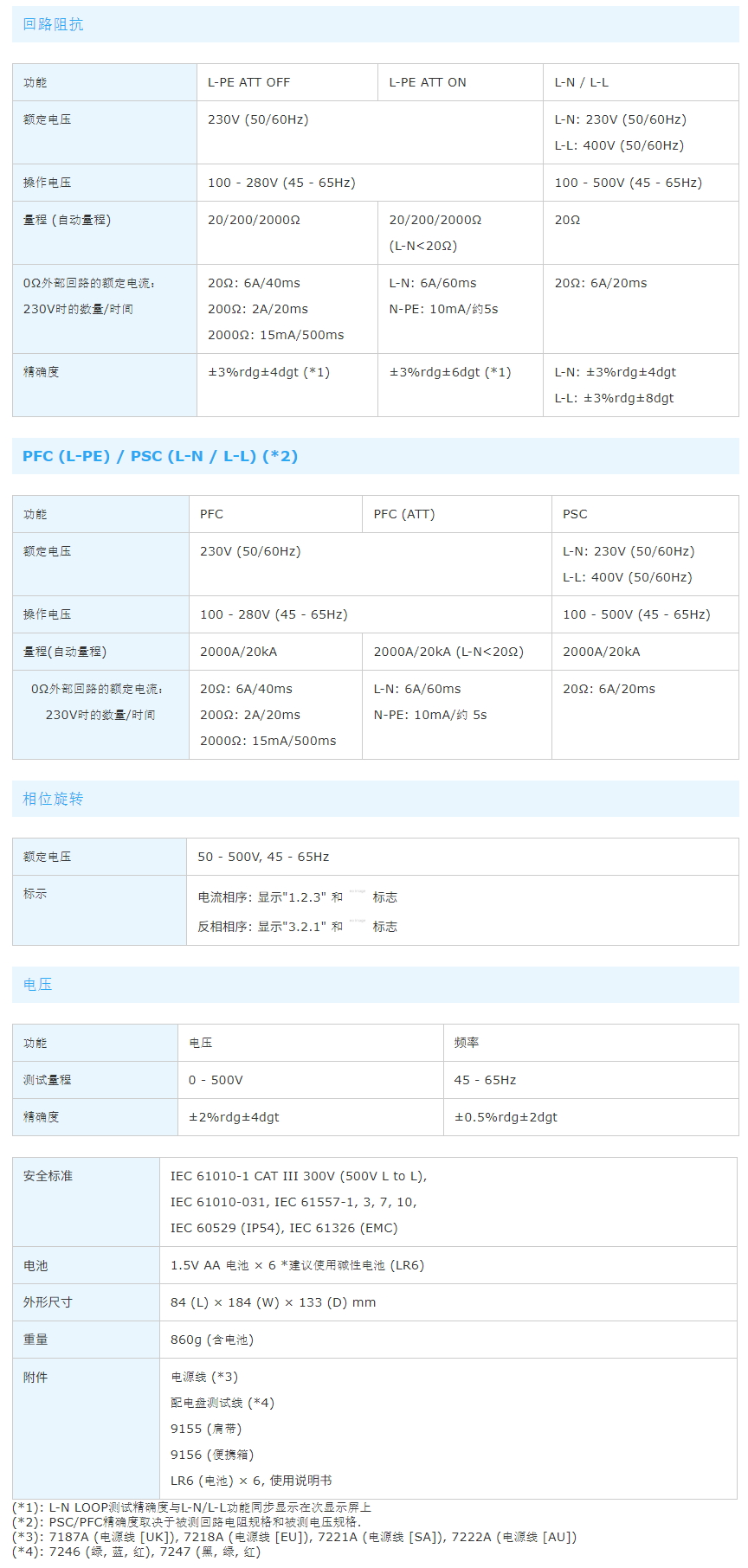 • 双重显示允许LOOP和PFC/PSC测试同时进行.