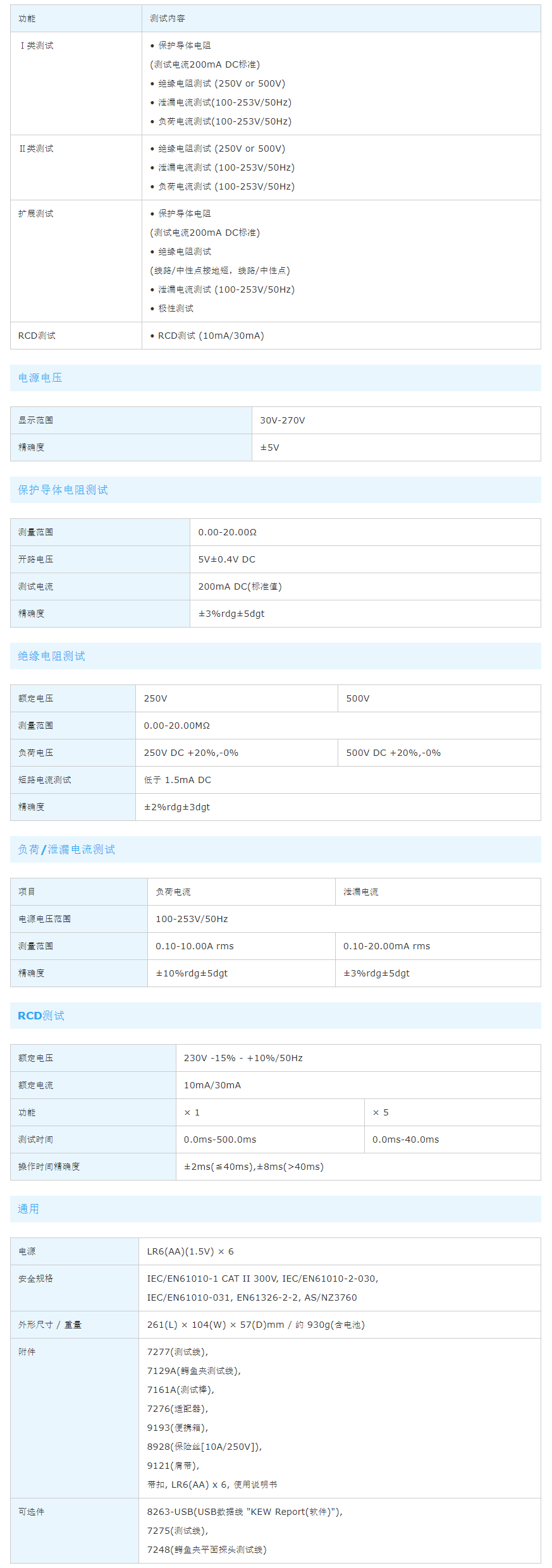 ・10 mA和30 mA RCD测试(内置隔离变压器)