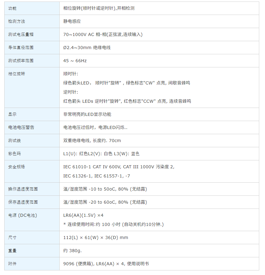 • 旋转照明LED和蜂鸣提示可了解相位旋转.