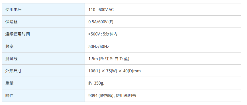 • KEW 8031F是以亮灯方式判断相序和开相与否的相序表.