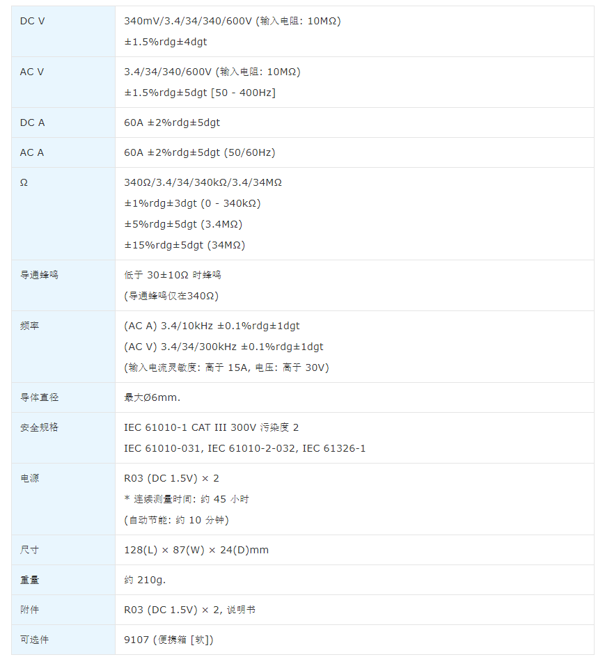 • 钳位传感器能够测量交流和直流电流高达60A。