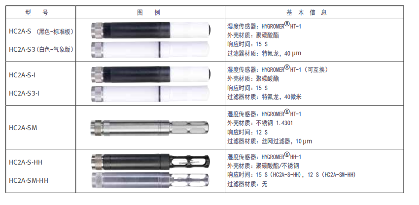 这两种湿度传感器都可用于暖通空调、食品、建筑服务设备、造纸、纺织和制药行业。 HC2A-S3为白色机身,可用于气象。