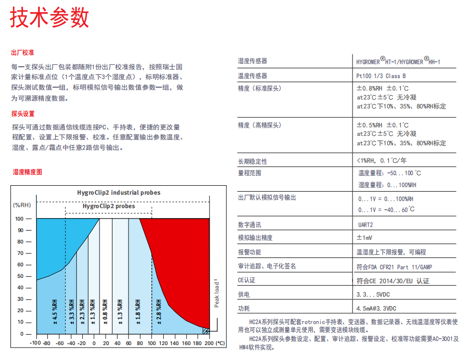 精度: ±0.8 %RH, ±0.1 K, @ 23 °C ±5 K