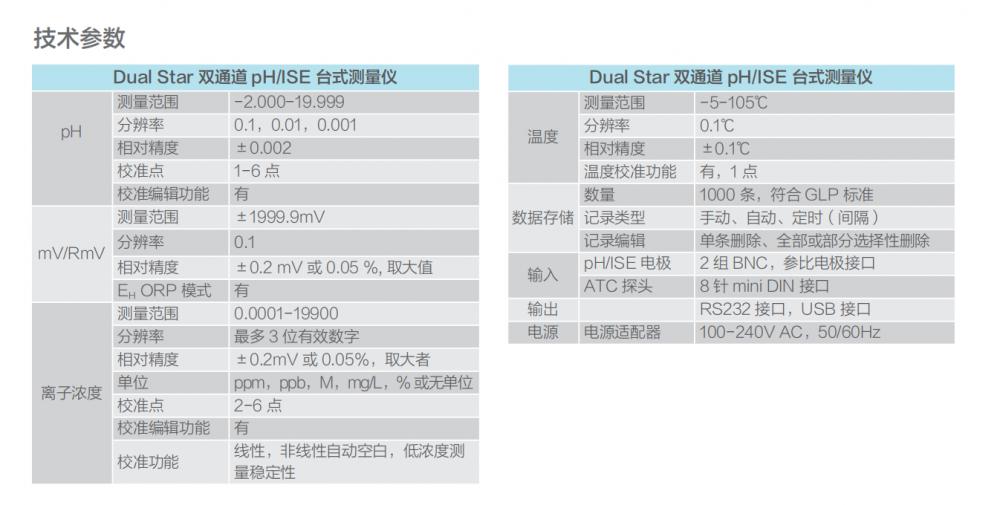 D10P-01 双通道 pH/ 离子 浓度测量套装: Dual Star 主机,8102BNUWP 超级 ROSS 复合 pH 电极,温度补偿电极,pH 缓冲液储存液,电极支架