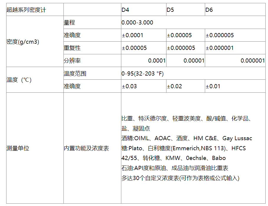 超越系列密度计确保高度可靠性与高精度,准确度达到 6 位小数。可快速准确地测量密度、比重和多种相关值,例如:酒精度与白利糖度。