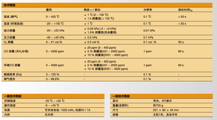 testo 310烟气套装,含充电电池和 O2、CO、hPa 及 ℃ 的校准协议;红外打印机(0554 3100);180 mm探针,带探头固定锥;硅胶软管,用于压力测量;粉尘过滤芯5个;2卷热敏打印纸。