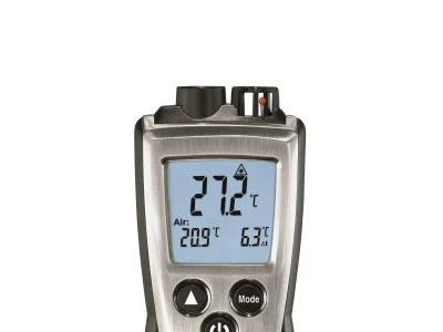 testo 810红外线测温仪,双通道测温,即可以红外非接触方式测量物体表面温度,又可通过内置NTC热敏电阻温度传感器同时测量空气温度,并自动进行温差计算并直接显示于带背光灯的显示屏上。