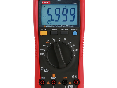 UT892是一款高压测量、真有效值、大屏显示手自一体的万用表;高压检测AC/DC电压可达2000V,同时解决VFC变频电压/频率的测量,能过滤正弦波叠加的载频干扰或各种畸变电压信号,并稳定测量输出电压。具有测量过压、过流报警提示,符合安规CATII 1000V/CATⅢ 600V 要求, 是电子电工高压设备检测优先选择的数字万用表。 广泛应用于:冶炼、通讯、制造、石油、国防、电力、光伏机站等领域。是电力设备检测、维护和维修专用测量工具,更多地解决:煤矿,光伏安装及验收高压检测。