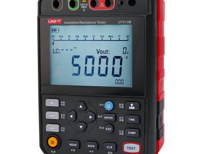 UT513B是数字式高压绝缘电阻测试仪, 具有250V,500V,1000V,2500V,5000V的高压输出量程,各量程的输出可设置10%步进微调电压;并具备999组数据存储,搭配PC软件,可将存储数据通过USB传送至PC端,测试数据也可实时传送至PC端; 广泛应用于:电缆、电机、发电机、变压器、互感器、高压开关、避雷器等设备的绝缘电阻测试。是电力、电信、气象、机房、油田、机电安装和维修以及工矿企业供电部门常用而必不可少的仪表。