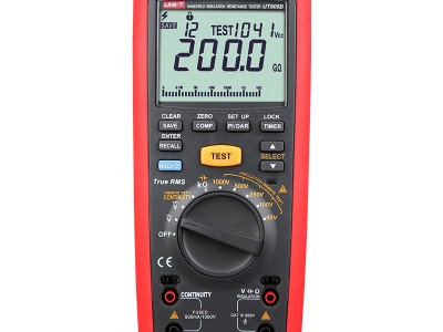 UT505B是一款集数字万用表和数字绝缘测试仪为一体的真有效值手持式绝缘电阻测试表。包含交直流电压测试(真有效值)、频率测试、电阻测试、电容测试、 CONTINUITY(连续性)测试和绝缘电阻测试等功能。具有一键测量极化指数(PI)和绝缘吸收比(DAR)功能,自动计算绝缘电阻比率,并以此数据来判定绝缘状况的优劣。应用于各种精密工具,包括电机、电缆、马达、变压器、开关、电器等各种电气设备及绝缘材料的绝缘电阻的测试,还具有漏电流显示功能、UES自检,自动保险丝检测、警告。