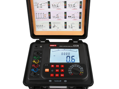 UT575B双钳多功能接地电阻测试仪是一款专为现场测量接地电阻、直流电阻、土壤电阻率、接地电流、接地电压而精心设计制造的高端仪表。仪表采用先进数字处理技术,具有二线法、三线法、四线法、选择法、双钳法等各种测量方法选择,钳头采用大口径电流钳设计,可测量大尺寸接地引下线的接地电阻值,可灵活测量单点和网状接地等各种复杂接地结构的接地电阻值,测量并联接地系统时无需断开任何并联接地极,极大地提高了测量的方便性,为接地性能测试提供了完美的解决方案。仪表具有存储功能,时钟功能,自动存储含有日期时间的测试结果2000组。并支持安卓系统的蓝牙通讯功能及USB接口,存储数据通过USB接口上传PC机,可以实现历史记录数据读取、查阅、保存、报表、打印等功能。 广泛应用于电力、电信、气象、油田、建筑、防雷及工业电气设备等行业。
