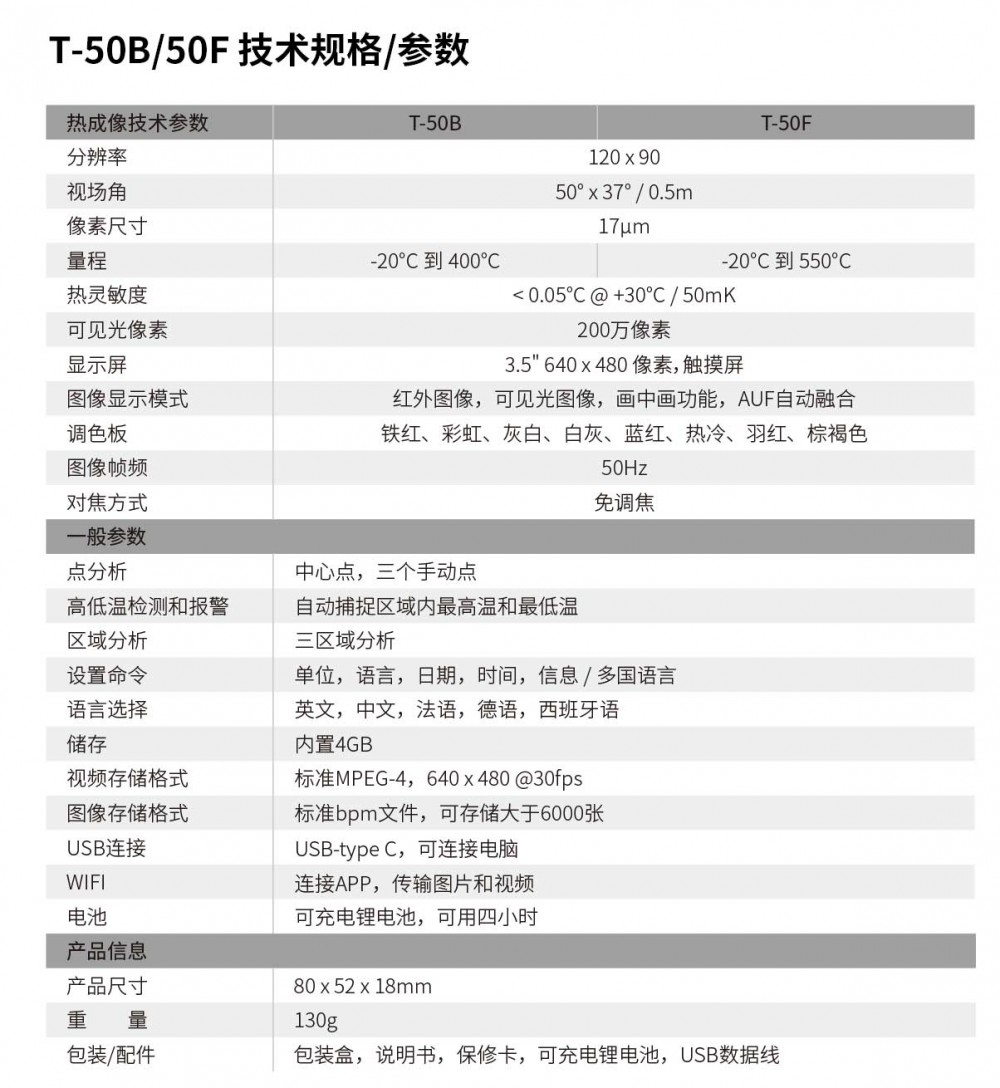 T-50F系列场CEM华盛昌公司自主设计、研发和推向市场的一款便携式口袋红外热像仪,具有120*190高红外分辨率,640*480清屏幕IPS2示,是工业随检测温的便携式红外热像仪工具。