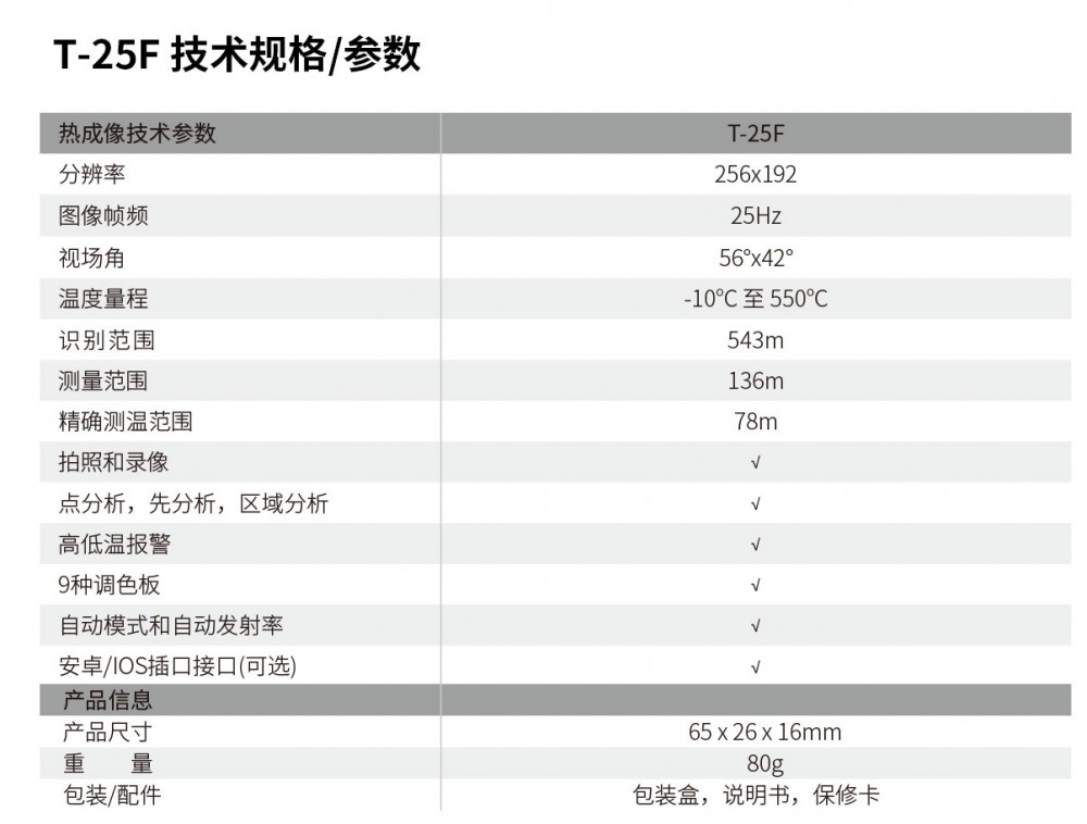 T-25F是CEM华盛昌自主设计、研发和推出的手机型红外热像仪,满足特殊应用领域行业客户以及热像仪发烧友的应用需求。